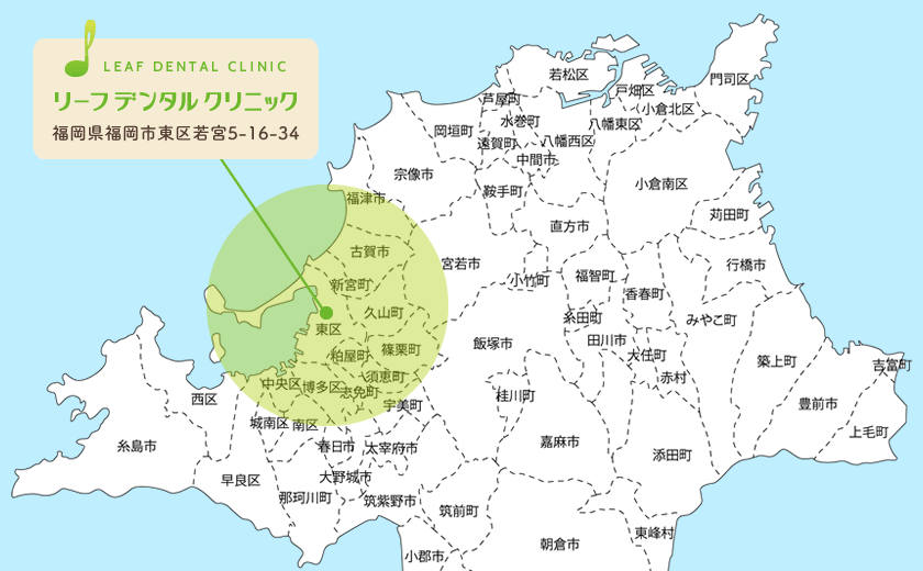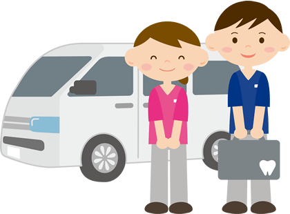 福岡市東区及び周辺(当院より半径16km以内)で歩行が困難な方のご自宅や病院・施設等にこちらからお伺いし、口腔内の治療・ケアを行います。お気軽にご相談ください。